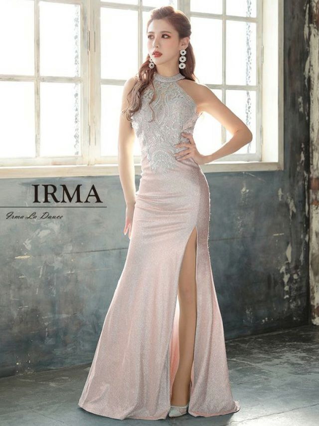 キャバドレス ロング IRMA イルマ 高級ラメホルターネックシースルーレースビジュースリットタイトロングドレス