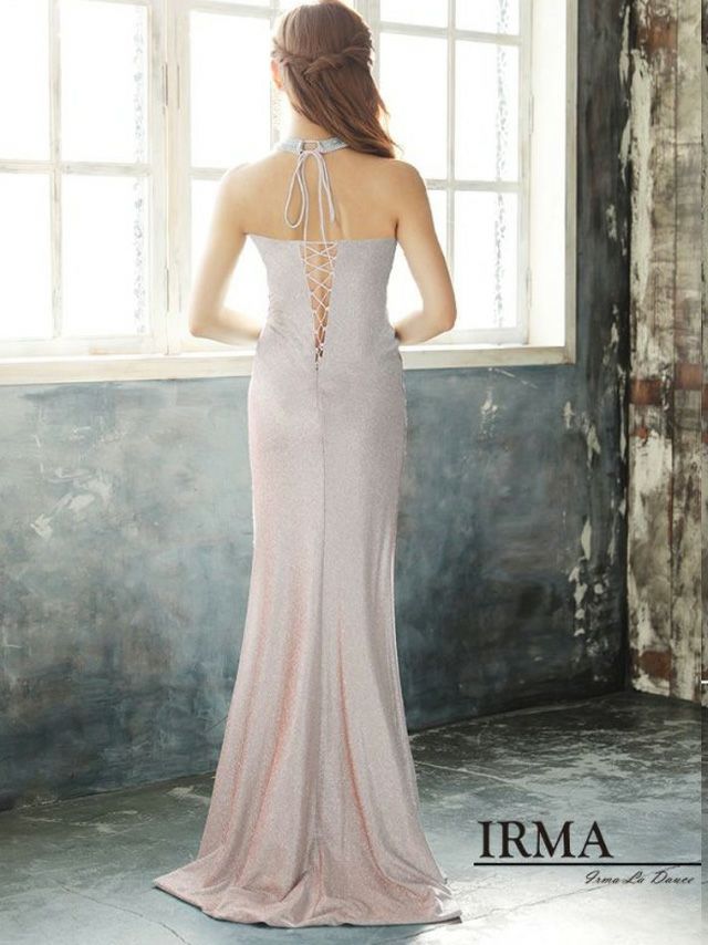 4. [IRMA/イルマ] 高級ラメホルターネックシースルーレースビジュータイトロングドレス