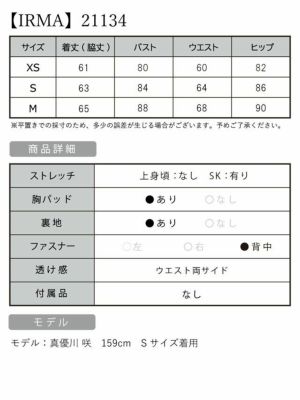 IRMA イルマ 高級キャバドレス サイズ表