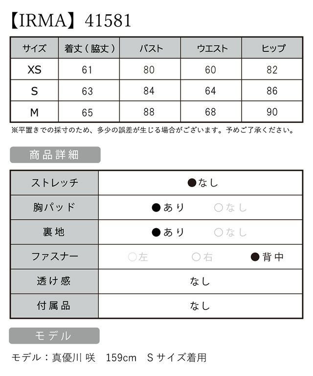 B.W.Hの3サイズは平置き計測した数字を2倍して記載してあります。