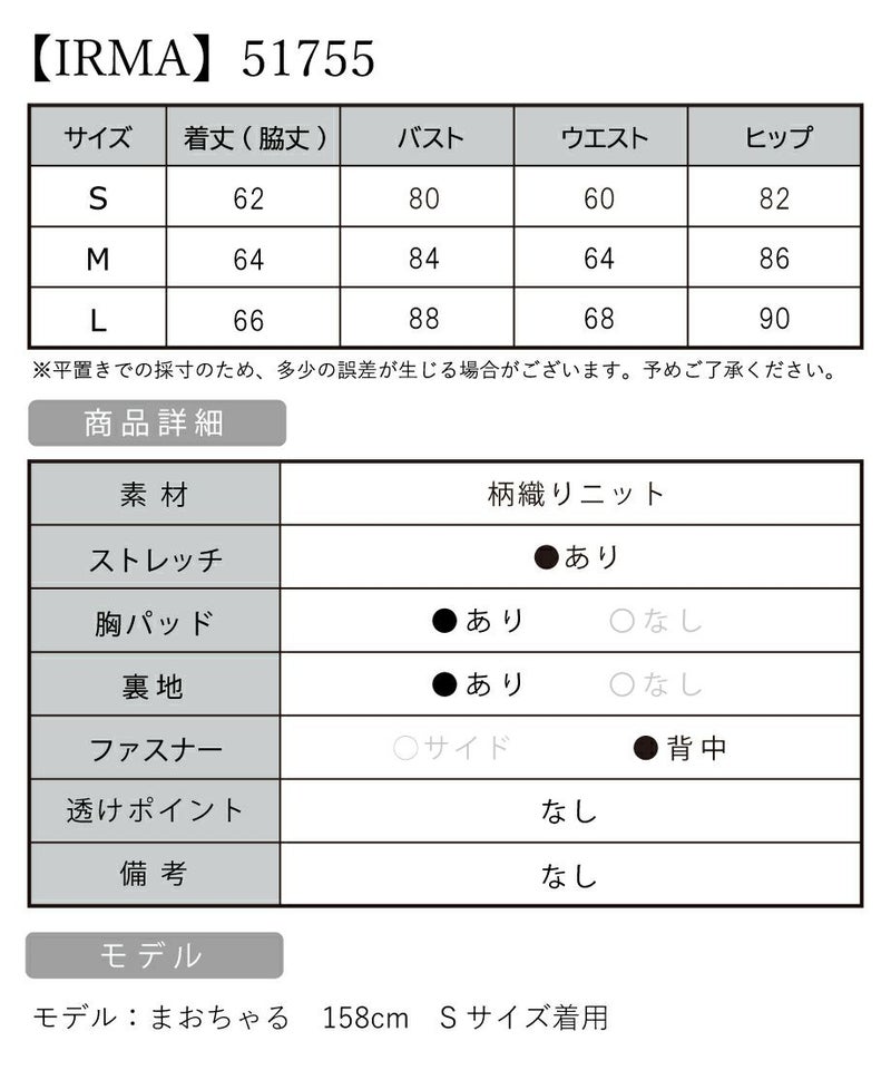 4. [IRMA/イルマ] 高級柄織ニット半袖ジップポケットデザインタイトミニドレス