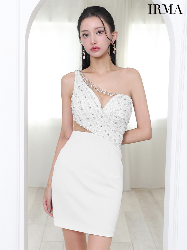 誰よりも美しく華やかに魅せる☆ [IRMA/イルマ] 高級 バストシースルー ゴージャスビジュー ワンショルダー 谷間魅せ タイトミニドレス