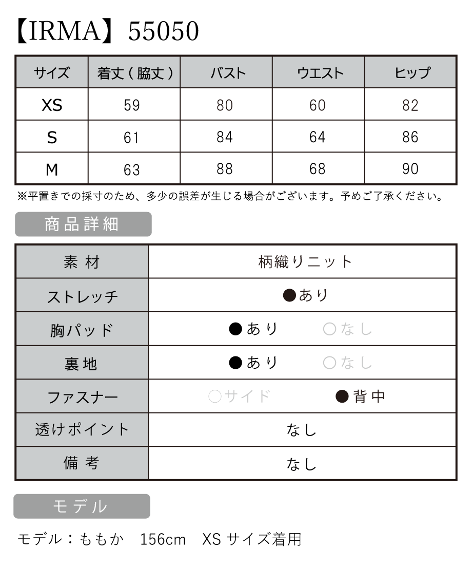 B.W.Hの3サイズは平置き計測した数字を2倍して記載してあります。