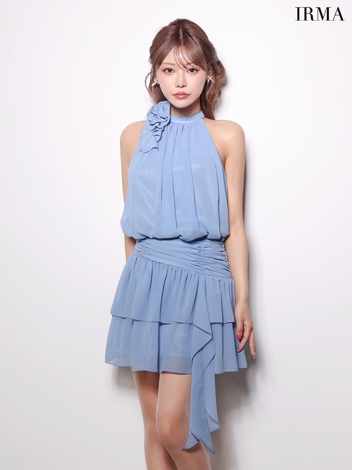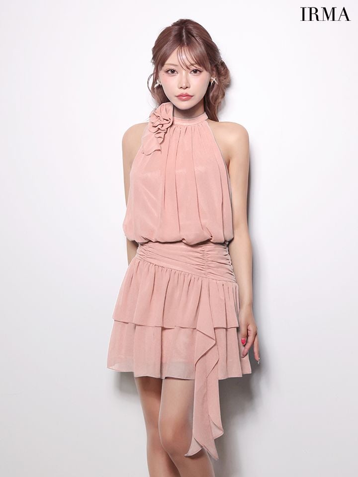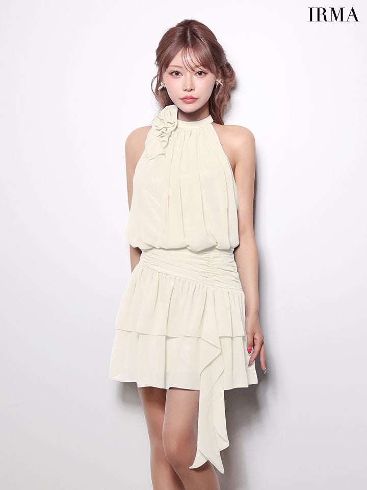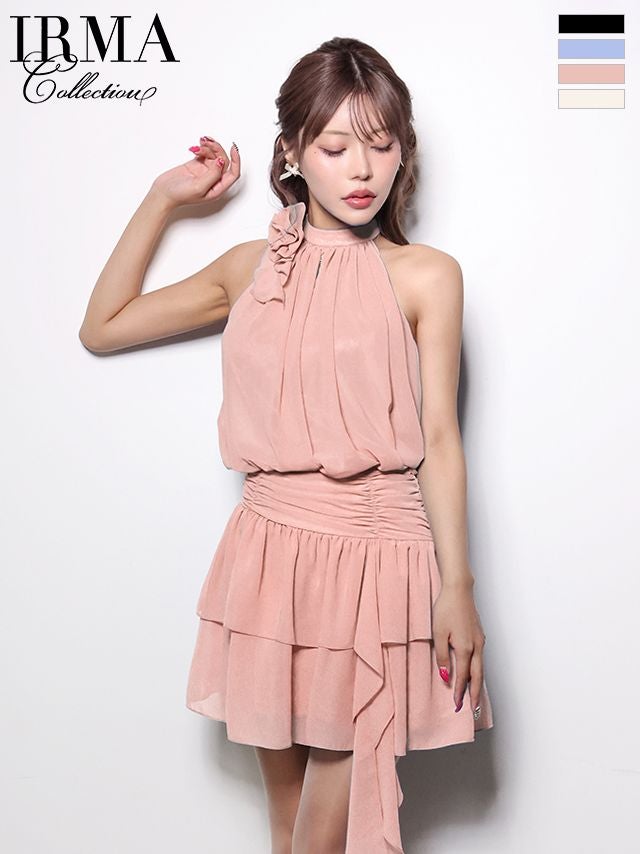 4. 予約商品【5月中旬入荷予定】[IRMA/イルマ] 高級 ブランド Aラインミニドレス セットアップ ホルターネック シフォン フリル ワンカラー