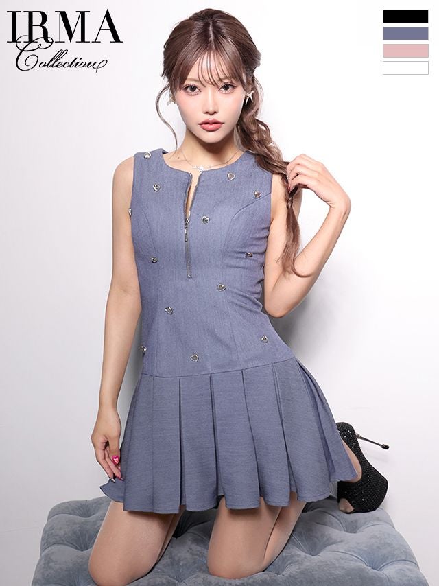 5. 予約商品【5月中旬入荷予定】[IRMA/イルマ] 高級 ブランド Aラインミニドレス 谷間 ノースリーブ ジップ ハートボタン プリーツ