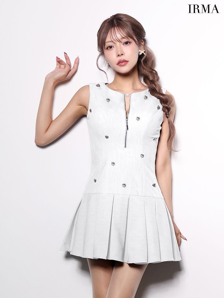 大人の可愛さをアピール♡ 予約商品【5月中旬入荷予定】[IRMA/イルマ] 高級 ブランド Aラインミニドレス 谷間 ノースリーブ ジップ ハートボタン プリーツ