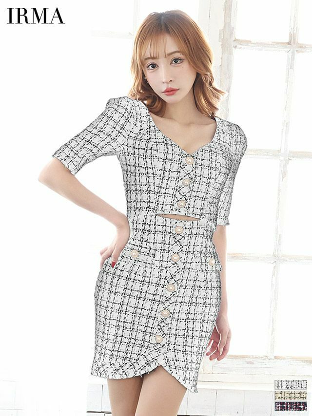 他の画像を見る キラキラ可愛く着痩せも狙える☆ [IRMA/イルマ] 高級キャミソールアシメヌーディービジュー切り替えチェック柄ツイードタイトミニドレス ¥ 31,680 税込 在庫切れ お気に入りに追加