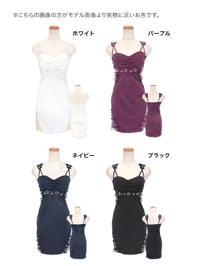 立体フラワービジューパールくびれ切替キャミソールタイトミニドレスのカラーバリエーション