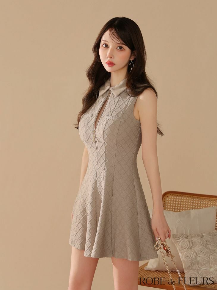 他の画像を見る 襟×バストジップの甘辛デザイン♡ [ROBEdeFLEURS/ローブドフルール] 高級 ブランド Aラインミニドレスノースリーブ ジップ 襟付き ラメ フェミニン (伊藤舞雪着用) ¥ 28,380 税込 お気に入りに追加