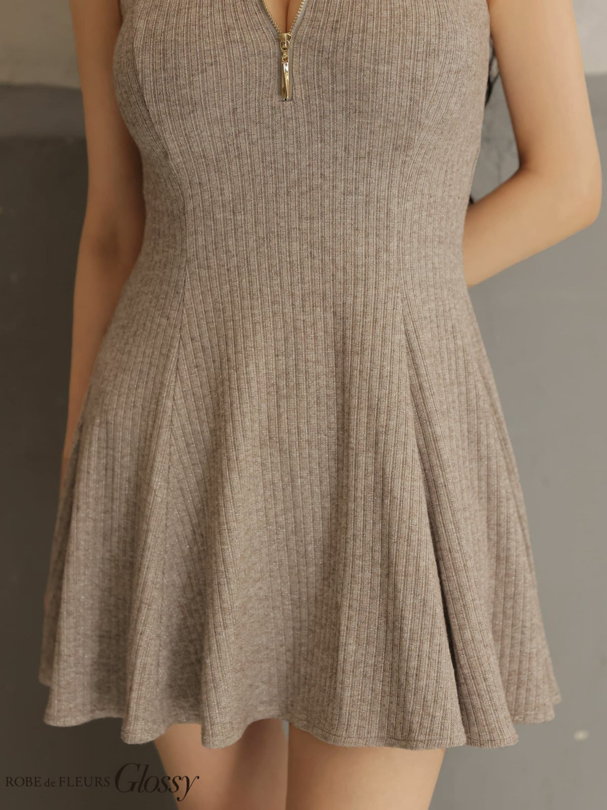 他の画像を見る 女性の品格を格上げしてくれる♡ [ROBEdeFLEURSGlossy/ローブドフルールグロッシー] 高級 ブランド Aラインミニドレス 谷間 ノースリーブ ジップ ハイネック ラメニット (伊藤舞雪着用) ¥ 25,080 税込 お気に入りに追加