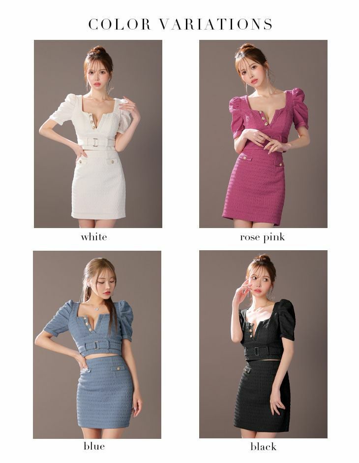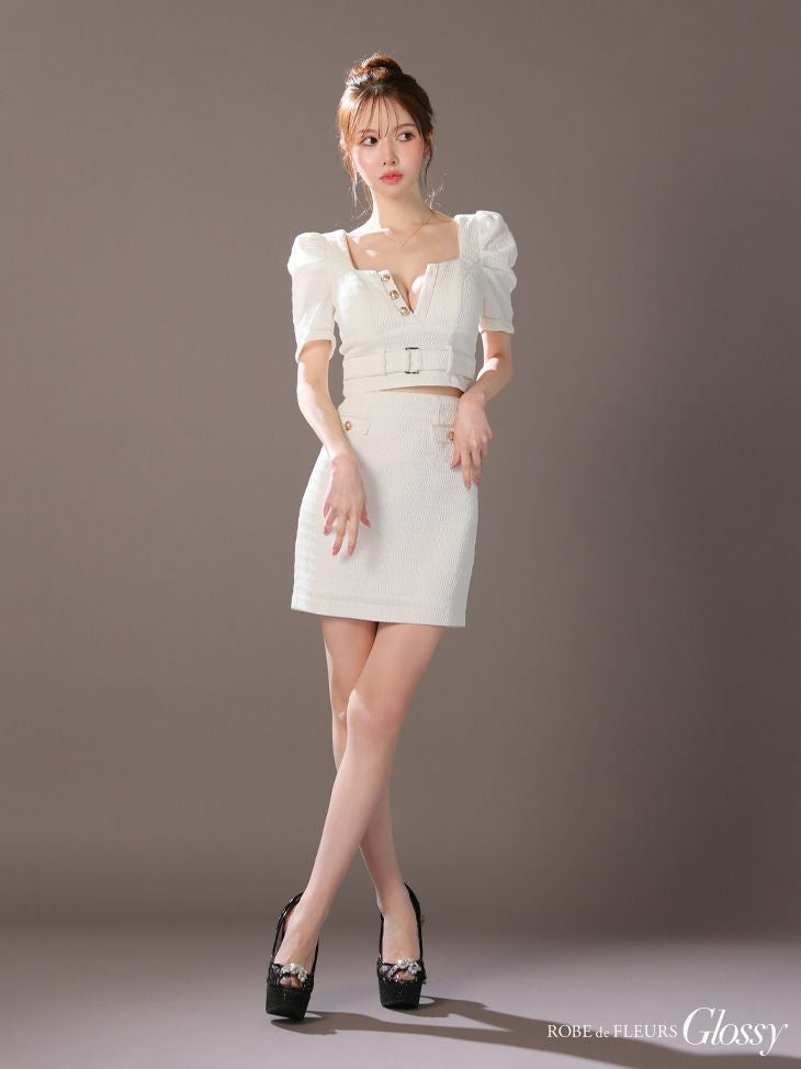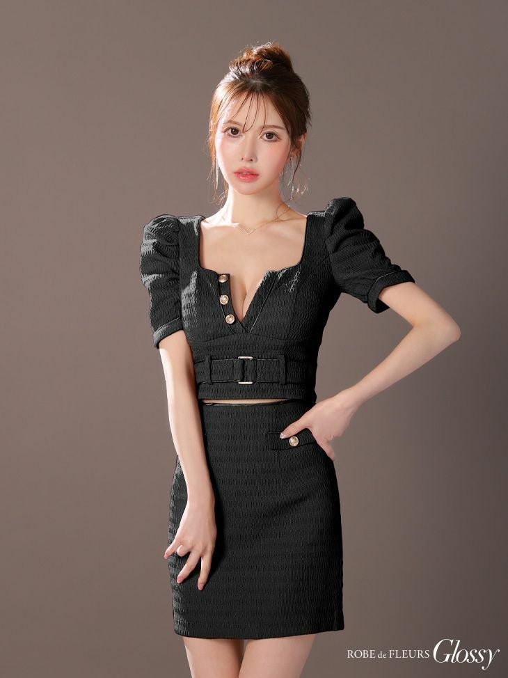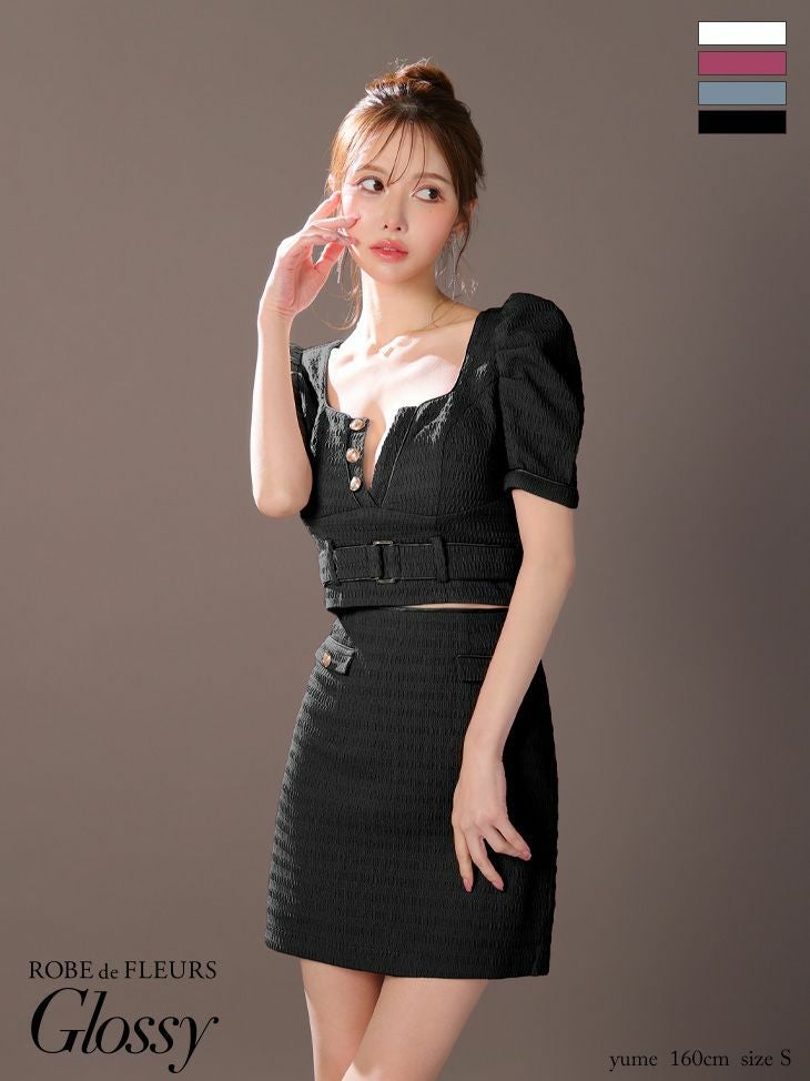 他の画像を見る 大胆な肌見せで視線を集める♡ 予約商品【2月下旬入荷予定】[ROBEdeFLEURSGlossy/ローブドフルールグロッシー] 高級 ブランド ミニドレス タイト セットアップ 半袖 ウエストベルト ボタン スクエアネック キャバドレス (伊藤舞雪着用) ¥ 29,480 税込 お気に入りに追加