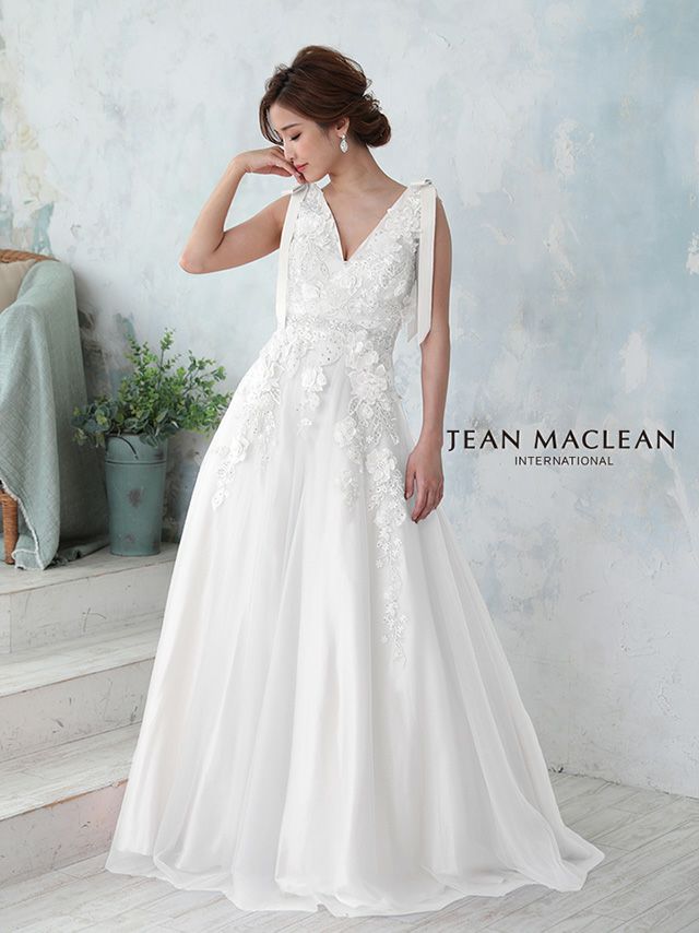 優雅な女性らしさを引き出す♡ 予約商品【5月中旬入荷予定】[JEANMACLEAN/ジャンマクレーン] 高級 バースデー パフスリーブ付き ハートカット ベアデザイン スパンコール刺繍 フリル チュール Aラインロングドレス