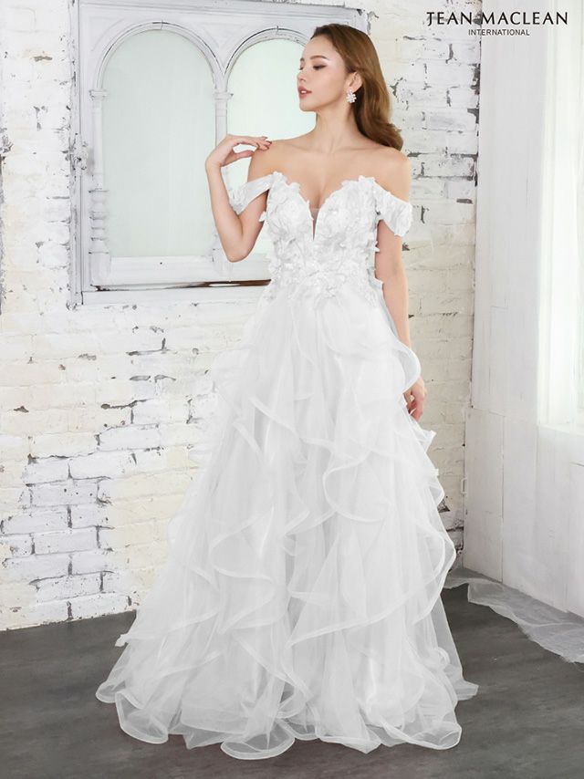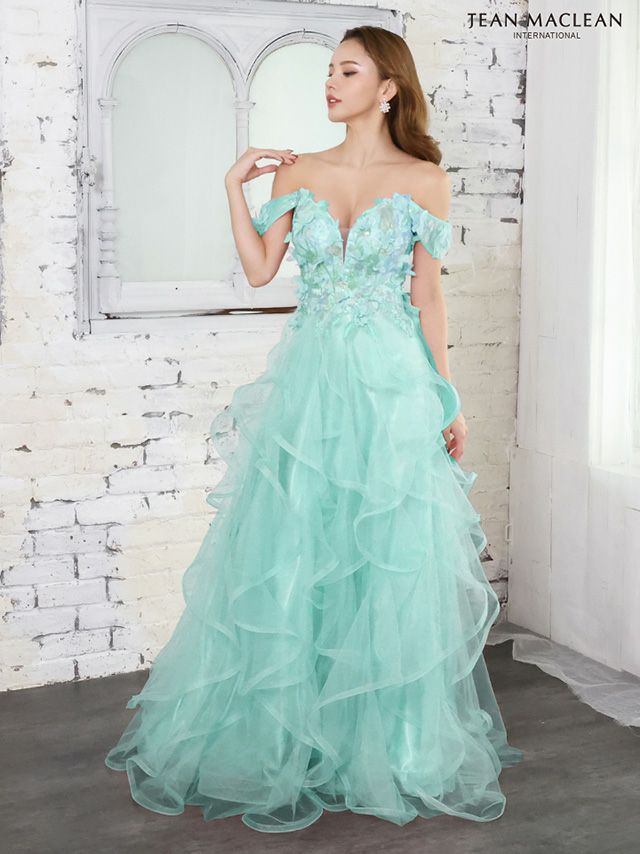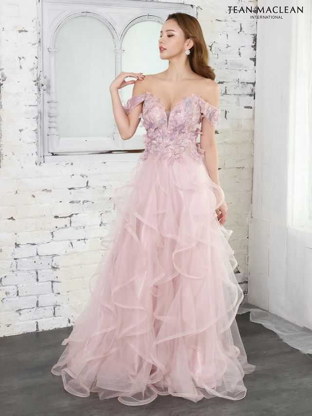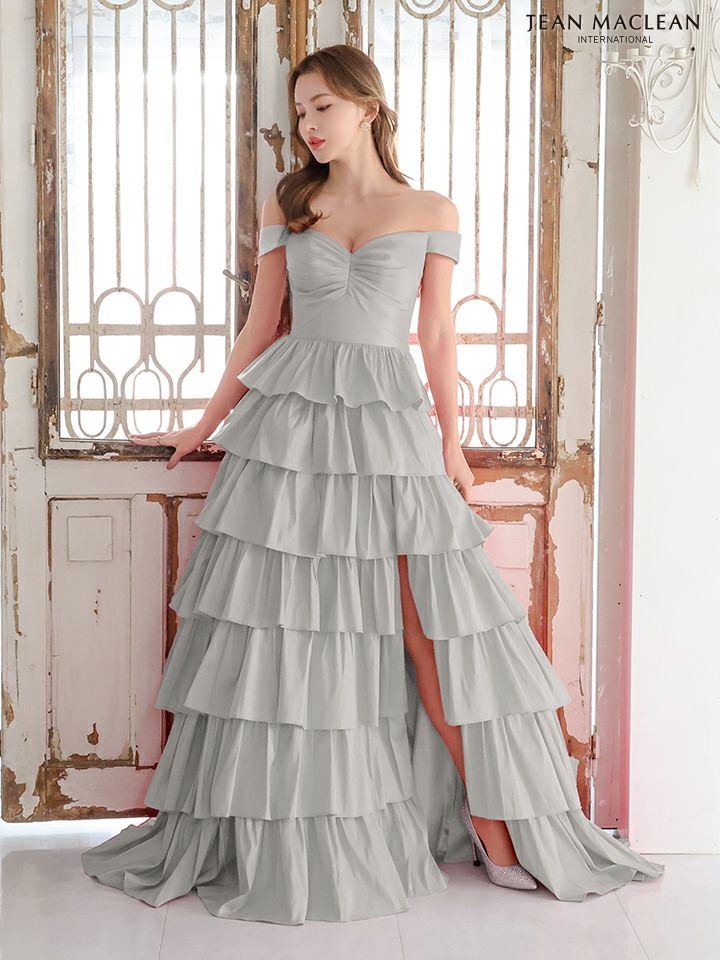 他の画像を見る 華やかなフリルで視線を集める☆ [JEANMACLEAN/ジャンマクレーン] 高級 バースデーオフショルダーティアードフリルサイドAラインロングドレス ¥ 50,600 税込 お気に入りに追加