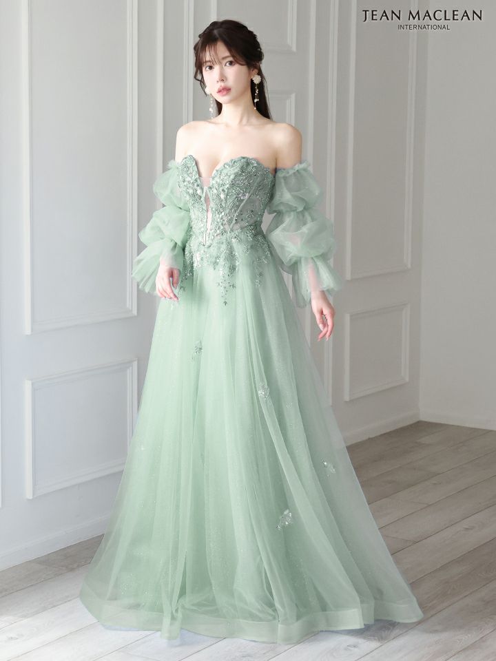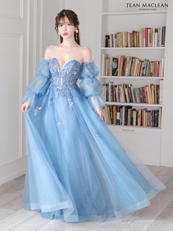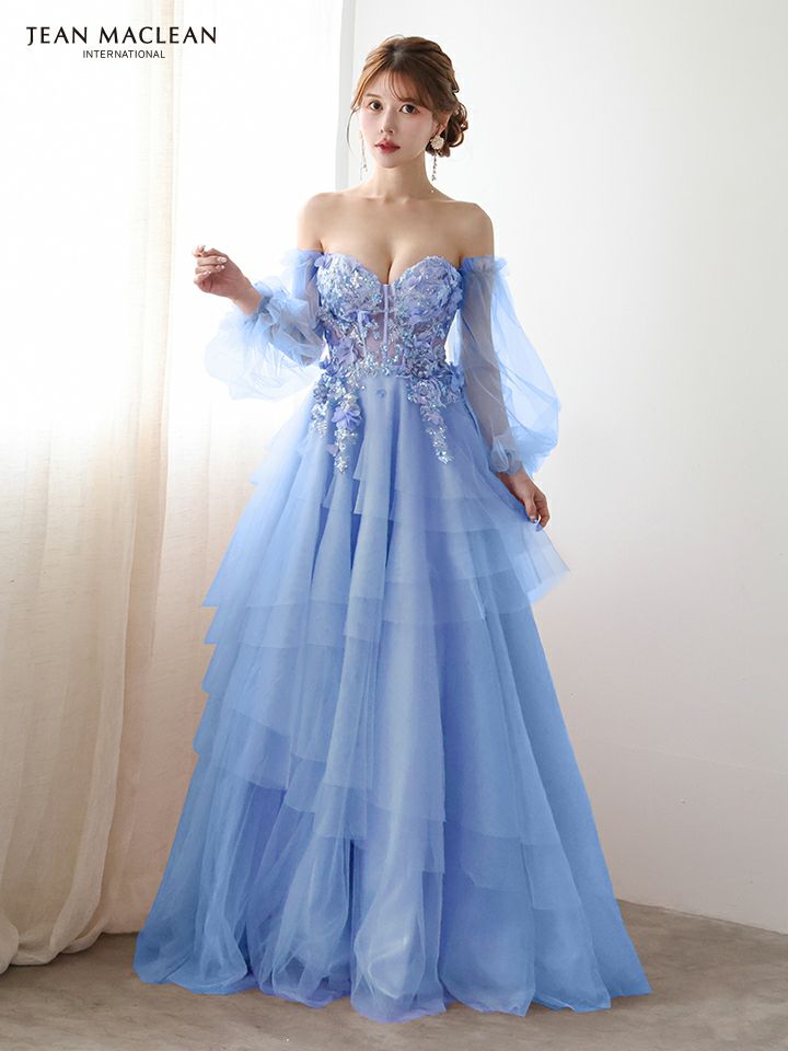 他の画像を見る 主役級プリンセスドレス☆ [JEANMACLEAN/ジャンマクレーン] 高級 バースデーチュールオフショルダー刺繍スパンコールレーススリーブ付きAラインロングドレス ¥ 49,500 税込 お気に入りに追加