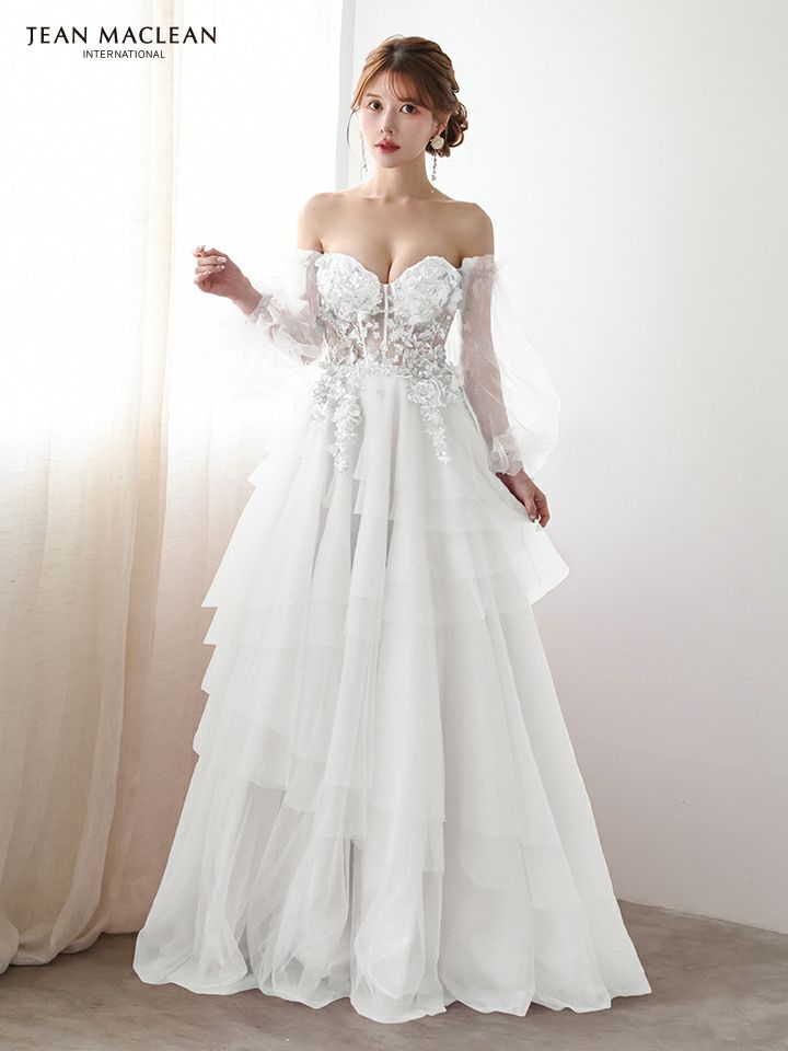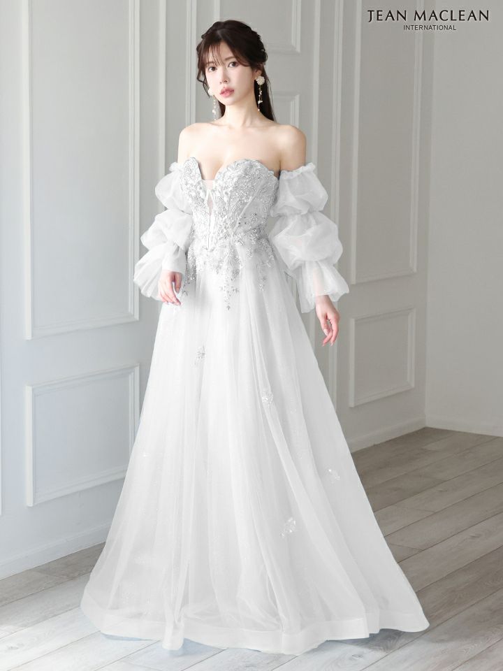他の画像を見る バースデードレスに最適☆ [JEANMACLEAN/ジャンマクレーン] 高級 バースデーベアトップロングスリーブ取り外し可能Aラインロングドレス ¥ 52,800 税込 お気に入りに追加