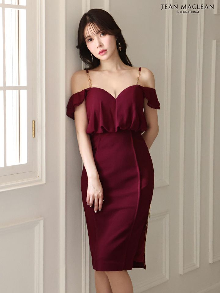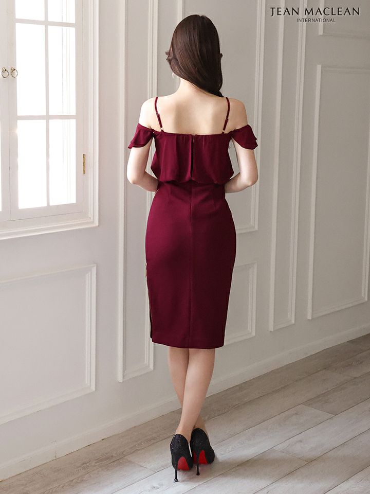 他の画像を見る ワンカラーの落ち着いた着こなし☆ [JEANMACLEAN/ジャンマクレーン] 高級 ワンカラー肩出し 二の腕カバー ジップ ファスナースリット タイト 膝丈ドレス ¥ 30,580 税込 お気に入りに追加