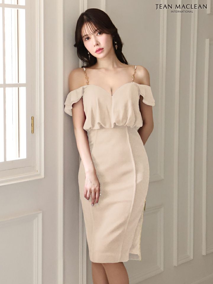 他の画像を見る エレガントな美シルエットをメイク♡ [JEANMACLEAN/ジャンマクレーン] 高級 肩出し 二の腕カバー フリル袖 ウエストタック タイトロングドレス ¥ 37,400 税込 お気に入りに追加