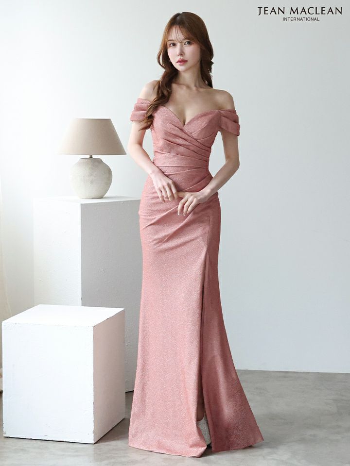 他の画像を見る デコルテラインを美しく魅せる♡ [JEANMACLEAN/ジャンマクレーン] 高級 バースデー オフショルダー ラメ タックデザイン バックスピンドル スリット タイトロングドレス ¥ 32,780 税込 お気に入りに追加