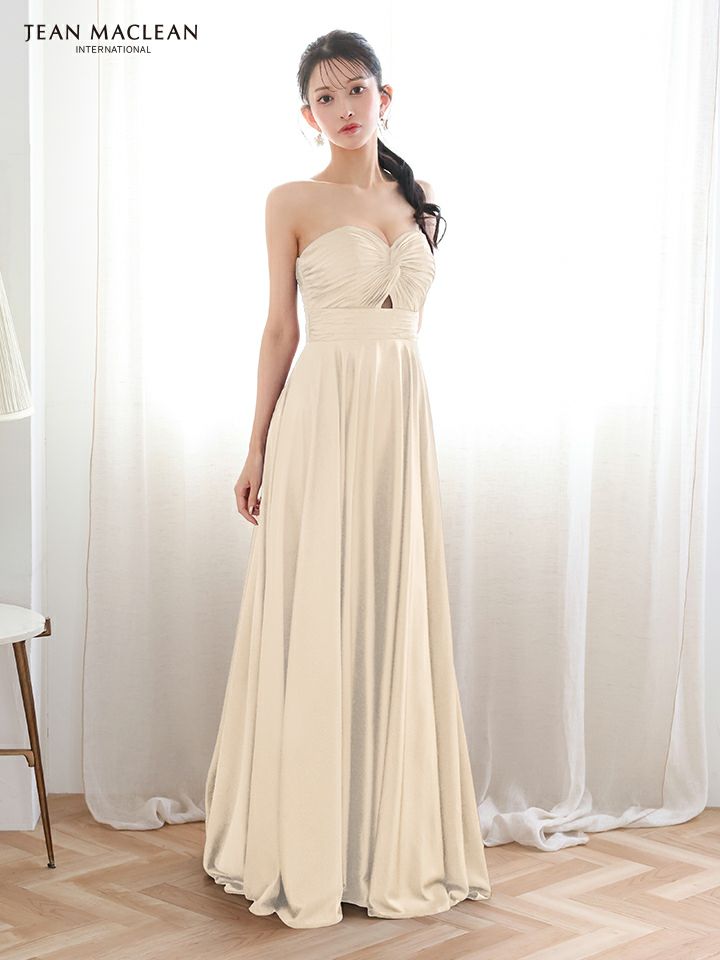 優美なシルエットをメイク♡ 予約商品【4月下旬入荷予定】[JEANMACLEAN/ジャンマクレーン] 高級 ブランド Aラインロングドレス 谷間 キャミソール 2way ハートカット バストツイスト ウエストカット サテン