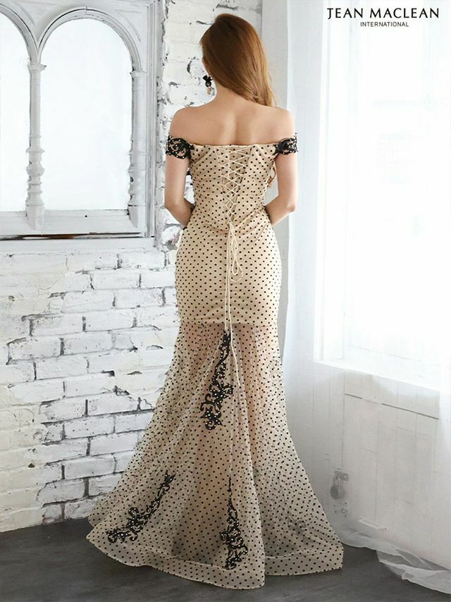 JEANMACLEAN ジャンマクレーン 高級アラベスク×ドット柄オフショルダーマーメイドロングドレス