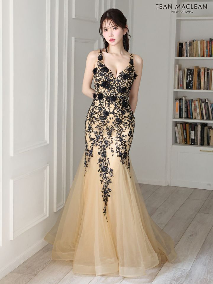 5. [JEANMACLEAN/ジャンマクレーン] 高級 バースデーフラワー刺繍レースノースリーブタイトロングドレス
