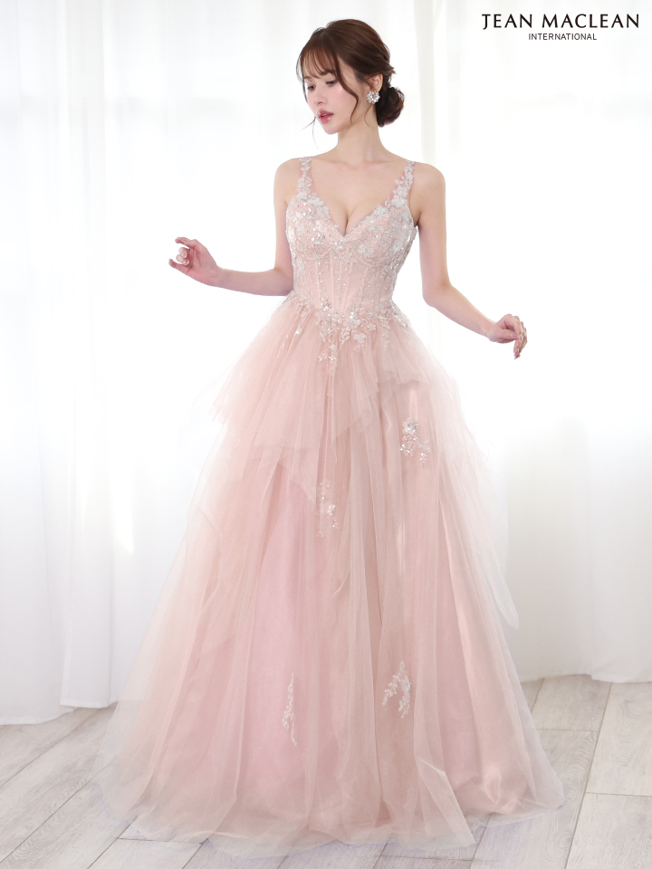 ボリュームたっぷりのチュールが可愛い☆ [JEANMACLEAN/ジャンマクレーン] 高級 バースデーキャミソールスパンコール刺繍ボリュームチュールAラインロングドレス