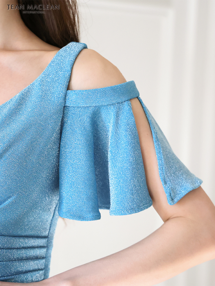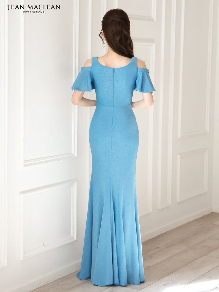 4. [JEANMACLEAN/ジャンマクレーン] 高級 肩出し 二の腕カバー フリル袖 ウエストタック タイトロングドレス