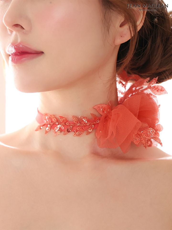 圧倒的な存在感を演出♡ [JEANMACLEAN/ジャンマクレーン] 高級 ブランド バースデー Aラインロングドレス 谷間 オフショルダー スパンコール刺繍 シアーコルセット風 チュール チョーカー付き