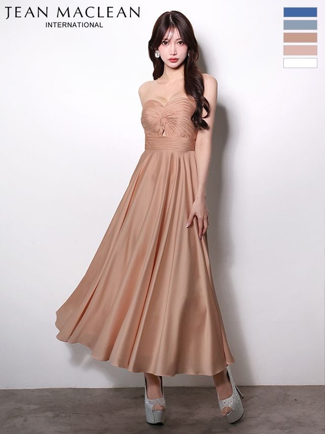 4. 予約商品【4月下旬入荷予定】[JEANMACLEAN/ジャンマクレーン] 高級 ブランド Aラインロングドレス 谷間 キャミソール 2way ハートカット バストツイスト ウエストカット サテン