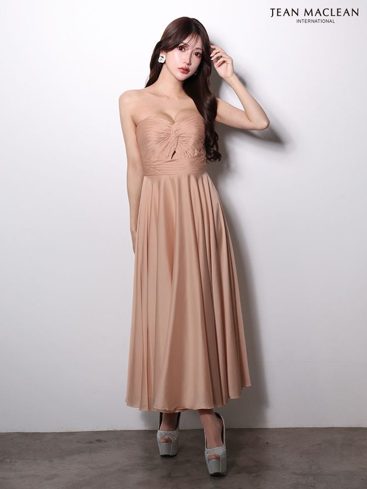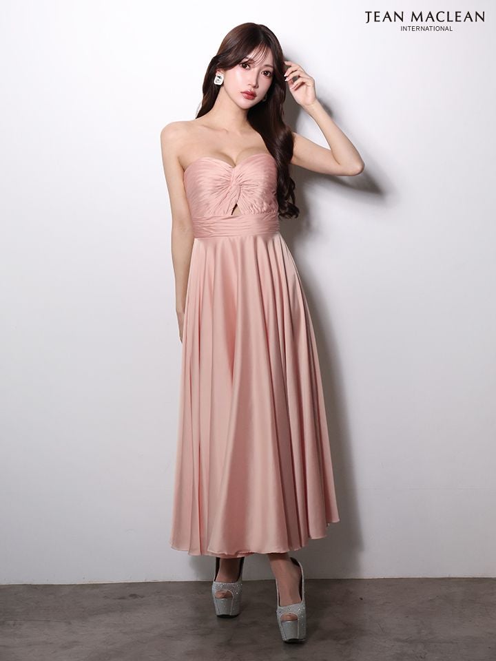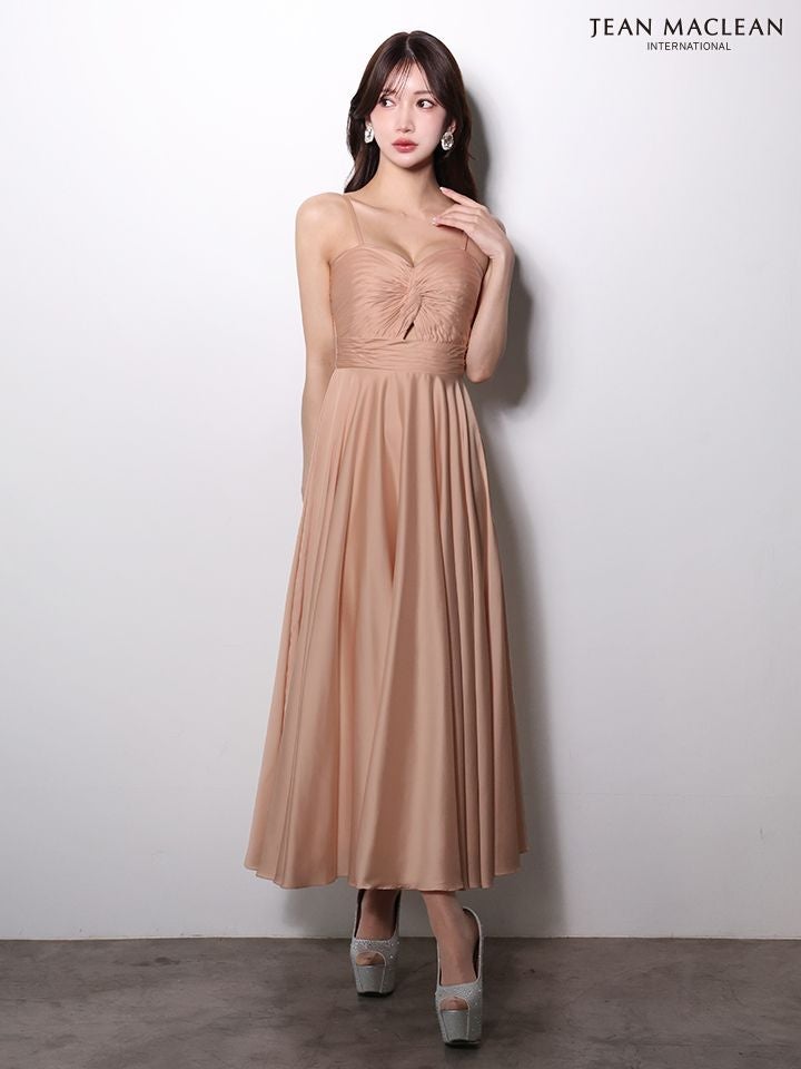 5. 予約商品【4月下旬入荷予定】[JEANMACLEAN/ジャンマクレーン] 高級 ブランド Aラインロングドレス 谷間 キャミソール 2way ハートカット バストツイスト ウエストカット サテン