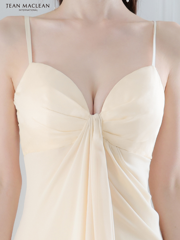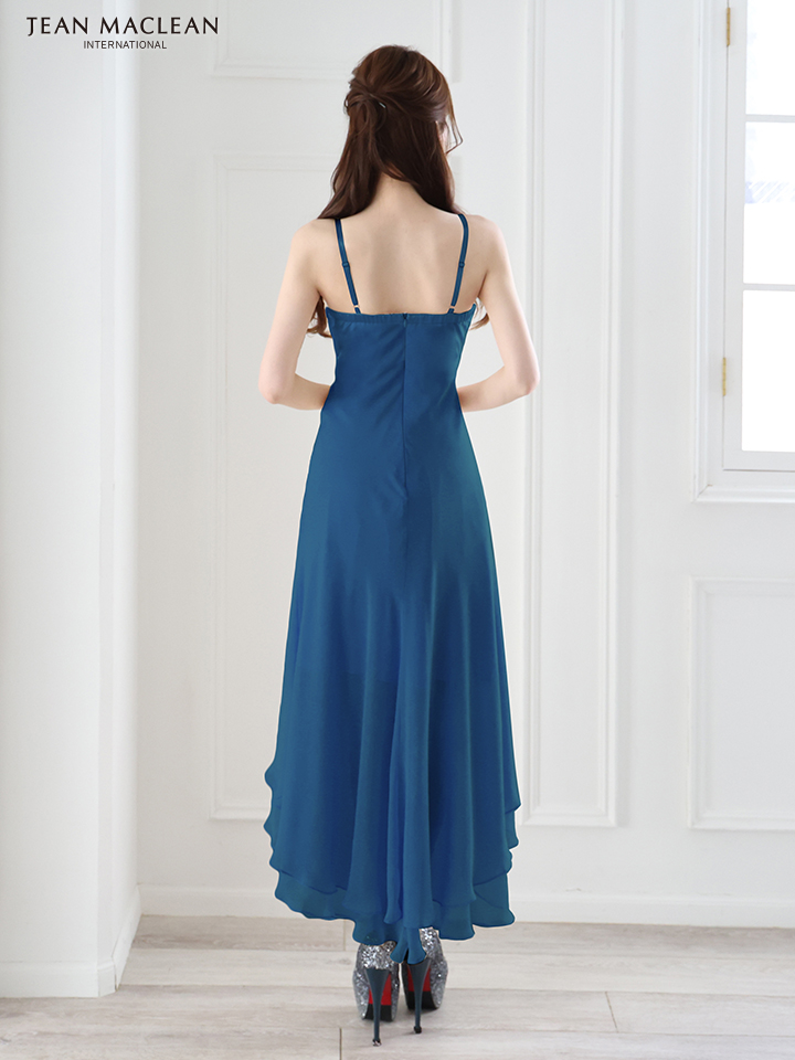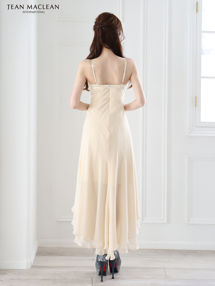 4. [JEANMACLEAN/ジャンマクレーン] 高級 キャミソール シフォン タック ワンカラー ロングテールドレス
