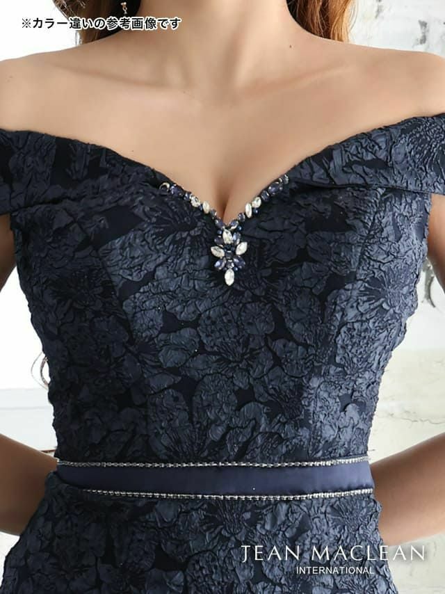 4. [JEANMACLEAN/ジャンマクレーン] 高級フラワージャガードハイウエストデザインオフショルダータイト膝丈ドレス