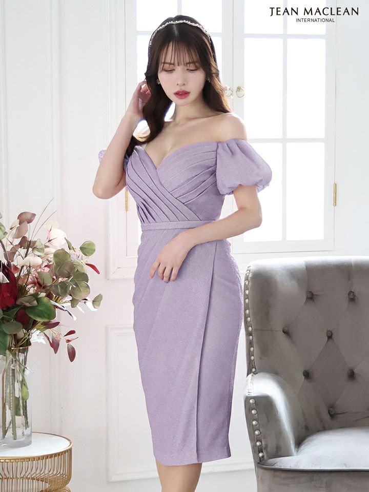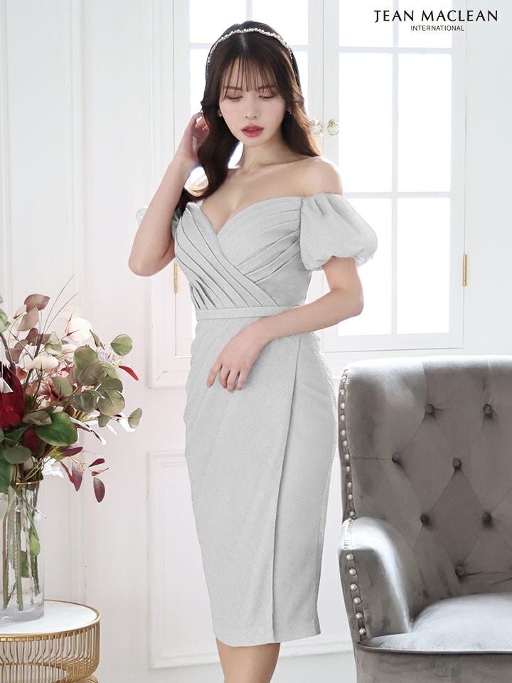 5. SALE [JEANMACLEAN/ジャンマクレーン] 高級ワンカラーオフショルダー半袖膝丈ドレス