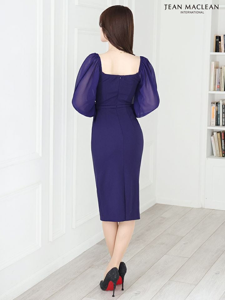 5. [JEANMACLEAN/ジャンマクレーン] 高級オフショルダーウエストタック長袖 袖ありタイト膝丈ドレス