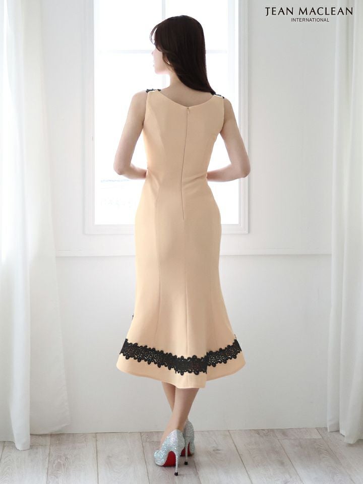 シンプルで清楚感漂う☆ SALE [JEANMACLEAN/ジャンマクレーン] 高級エレガントフラワー刺繍ノースリーブ膝丈ドレス