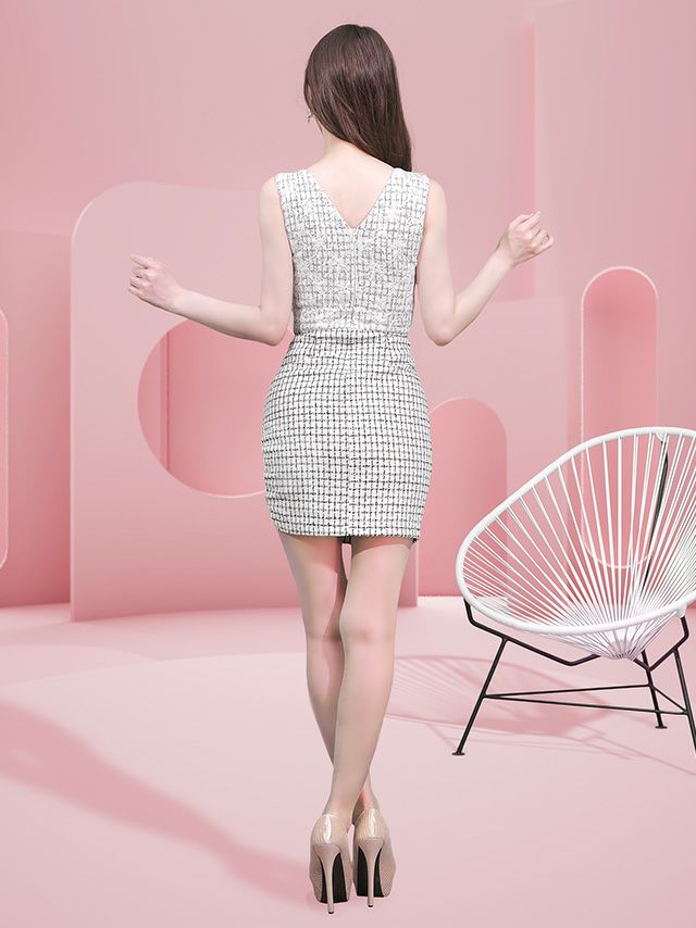 他の画像を見る 程よい肌見せで色気を醸し出す☆ [SALE] [JENNNY/ジェニー] チェック柄 ツイード フリンジパール ウエストカット袖あり 七分袖 タイト 膝丈ドレス ¥ 17,600 ¥ 8,800 税込 お気に入りに追加
