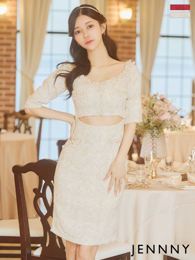 他の画像を見る 周りと差がつくお洒落デザイン☆ [JENNNY/ジェニー] ラメツイード ダブルボタン ウエストリボン ノースリーブ バストカット 谷間魅せ フレアミニドレス ¥ 16,500 税込 在庫切れ お気に入りに追加