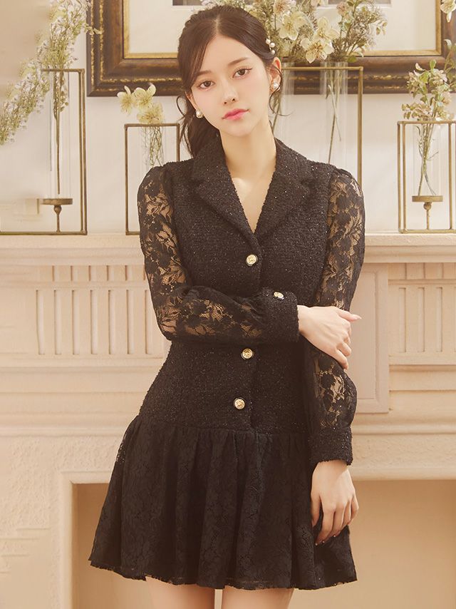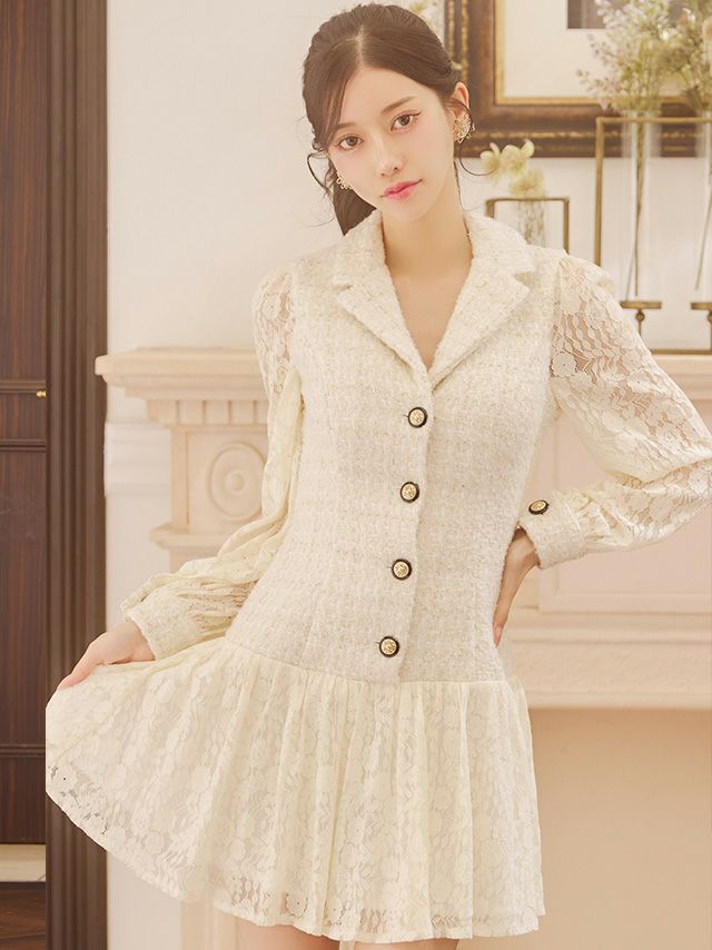 他の画像を見る 着るだけで女子力UP♪ [SALE] [JENNNY/ジェニー] テーラード 長袖 袖あり フラワーレース切り替え ツイード 襟付き フレアミニドレス ¥ 16,500 ¥ 8,250 税込 お気に入りに追加