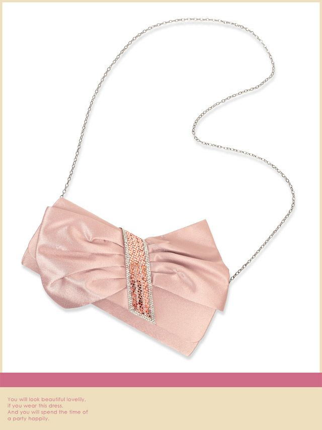 大きなリボンがモチーフで可愛い♪ 2Wayサテンビジューリボンクラッチバック