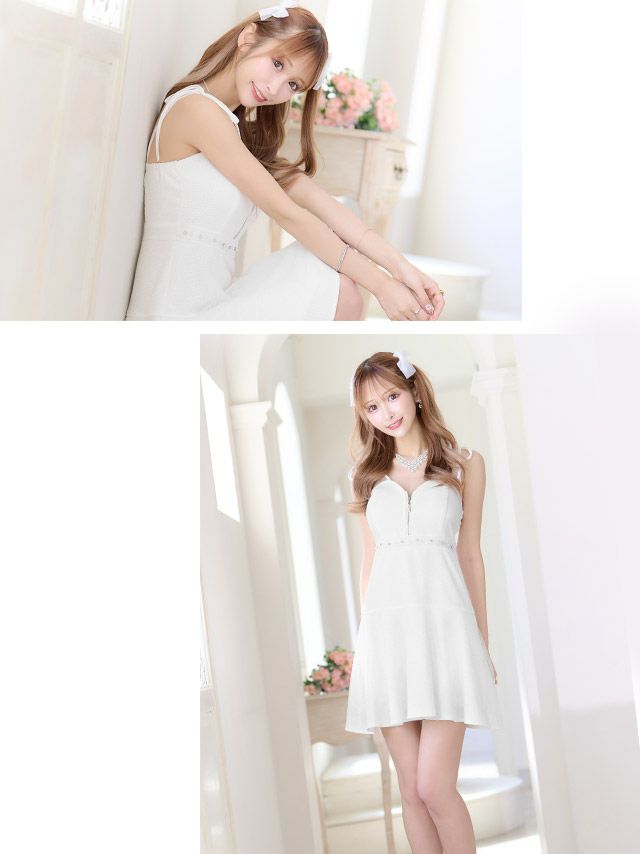 4. ドットシアーショルダーリボンキャミソールバストジップフレアミニドレス (Sサイズ~XLサイズ) (明日花キララ/キャバドレス着用)