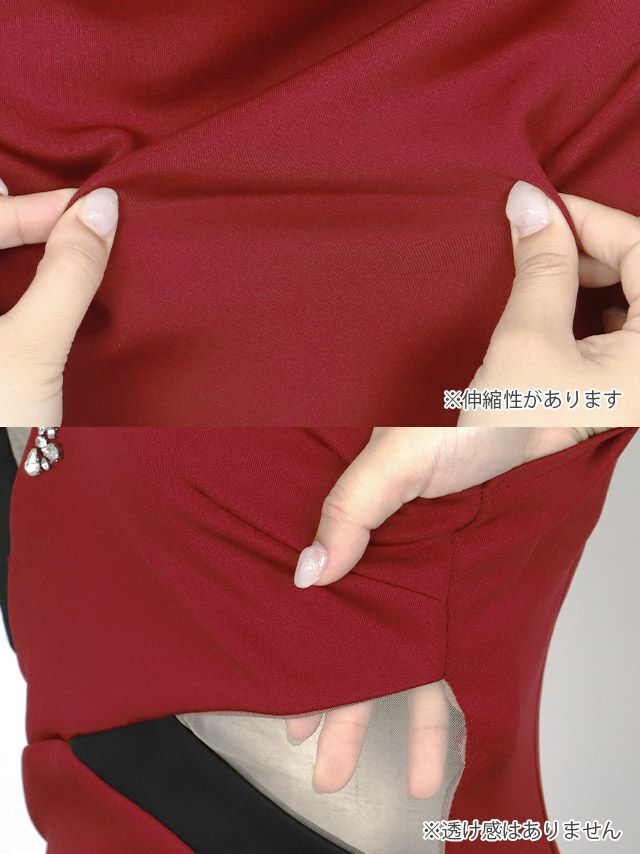 Vネックビジューノースリーブシアーくびれ切り替えバイカラーアシメタイトミニドレスのカラーバリエーション