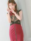 キャバドレス ミニドレス タイトドレス 大きいサイズ Tika ティカ チョーカーネックリボンフラワーレース切り替えフロントファスナータイトミニドレス