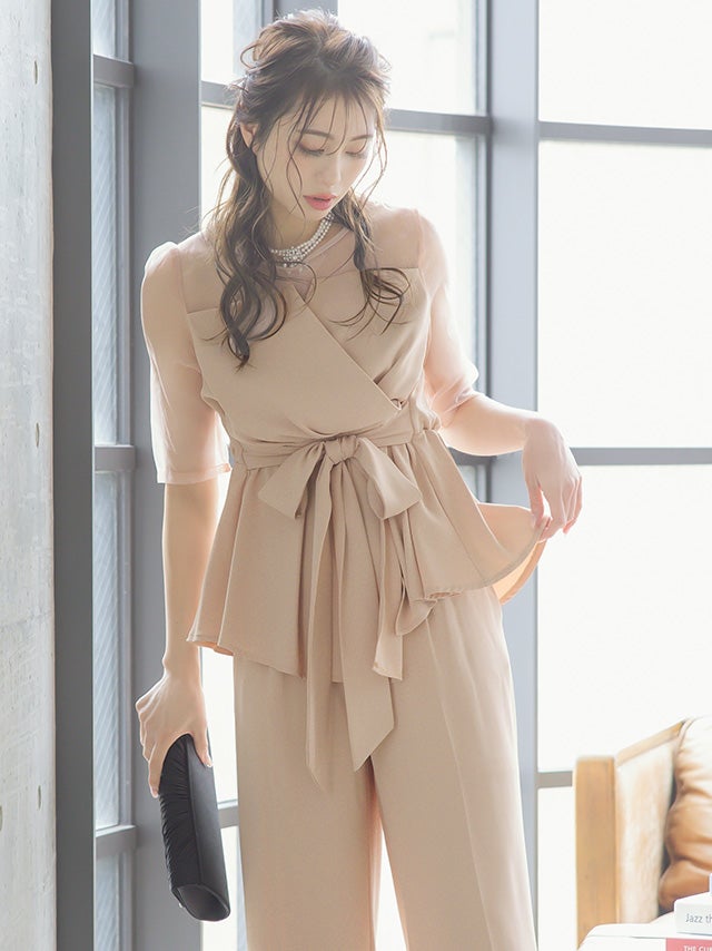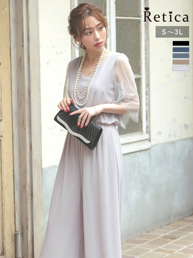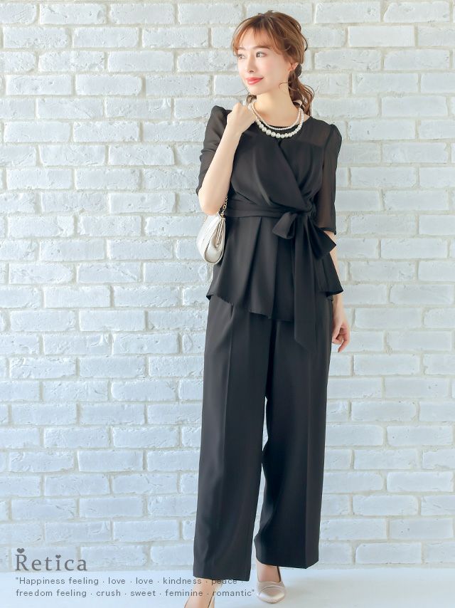 他の画像を見る ボディラインを拾わない万能ドレス♪ [SALE] 五分袖ウエストリボン付きビスチェ風レーストップスワイドパンツツーピース結婚式パーティードレス [Retica/レティカ] パーティーセール ¥ 11,000 ¥ 8,690 税込 お気に入りに追加