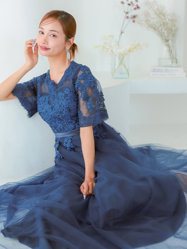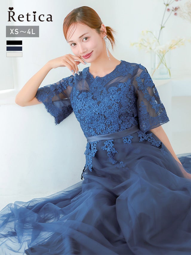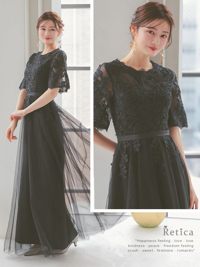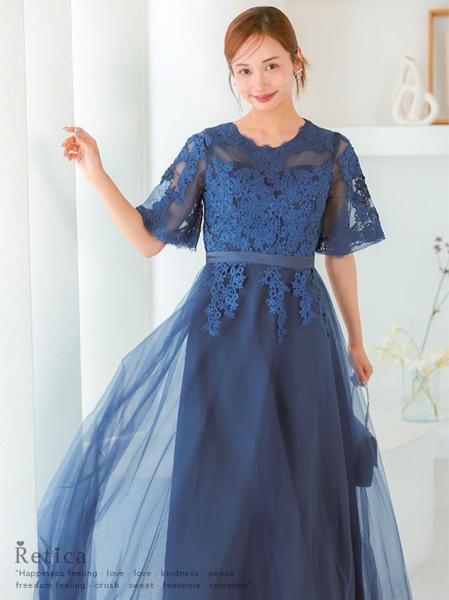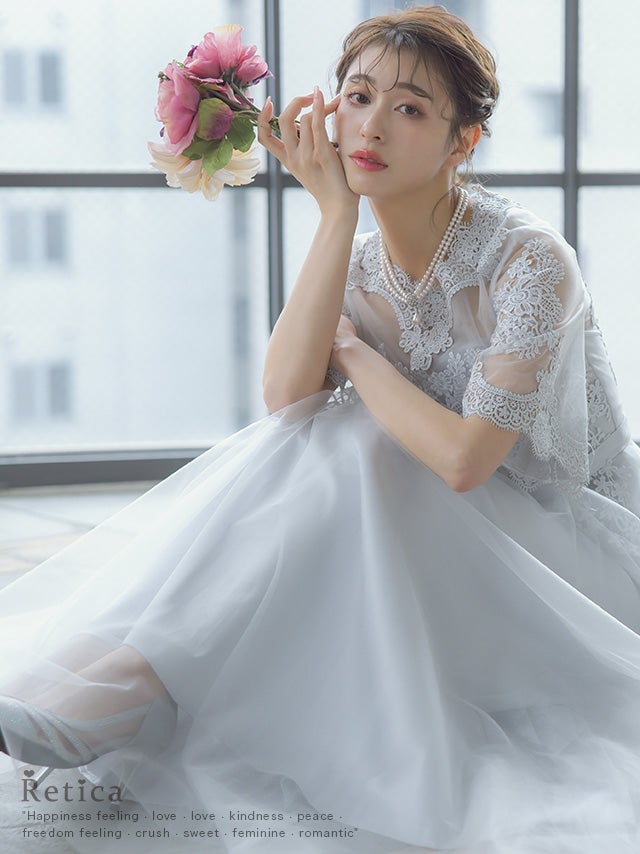 他の画像を見る 優雅な女性らしさを醸し出す♪ [SALE] シースルー刺繍デザイン五分袖バックスピンドルロングスカート結婚式パーティードレス [Retica/レティカ] パーティーセール ¥ 12,100 ¥ 10,780 税込 お気に入りに追加