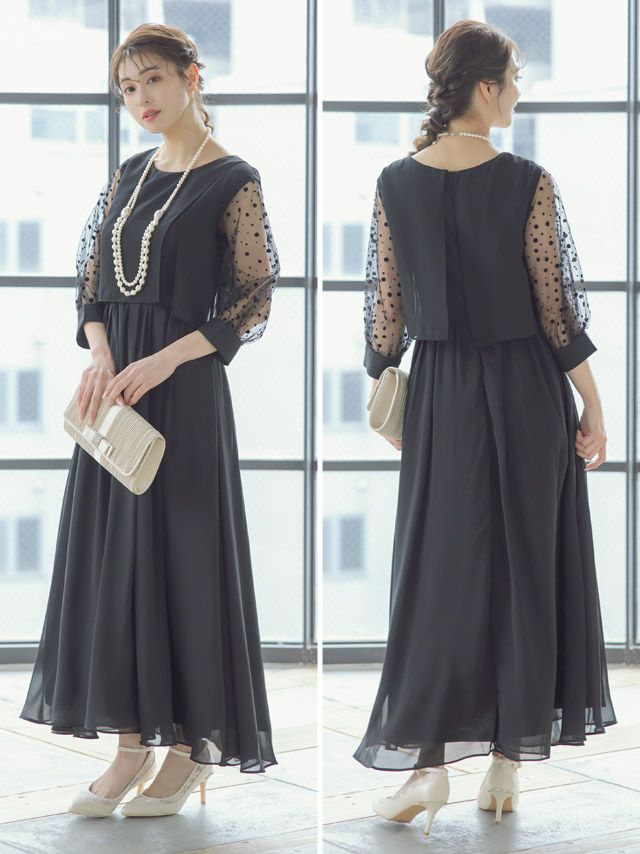 他の画像を見る 体型カバーも叶えるエレガントドレス♪ ワンカラードット七分袖シースルー切替シフォンロングスカート結婚式パーティードレス [Retica/レティカ] ¥ 12,100 税込 お気に入りに追加
