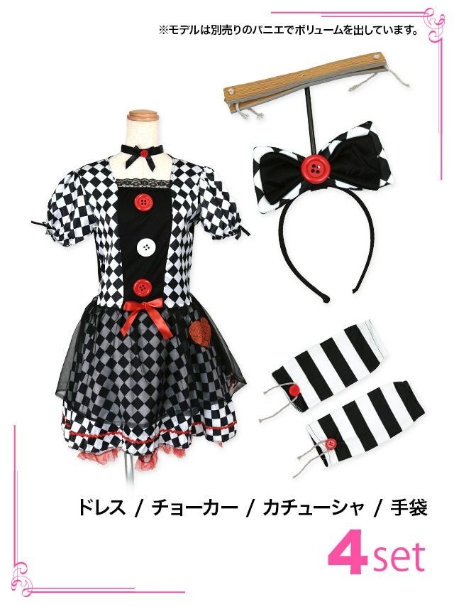 桃々ちゃんPyuna.ちゃんインスタ掲載コスプレ! [コスプレ] ダイヤチェックアメリカンへそ出しウエイトレス [6点セット] (トップス/ボトムス/カチューシャ/付け襟/手袋/リボン)