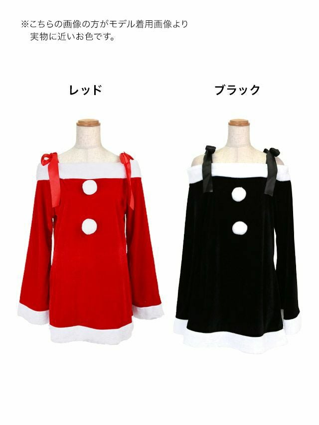 サンタコス 3点set リボンストラップオフショル王道サンタコスプレの詳細アップ