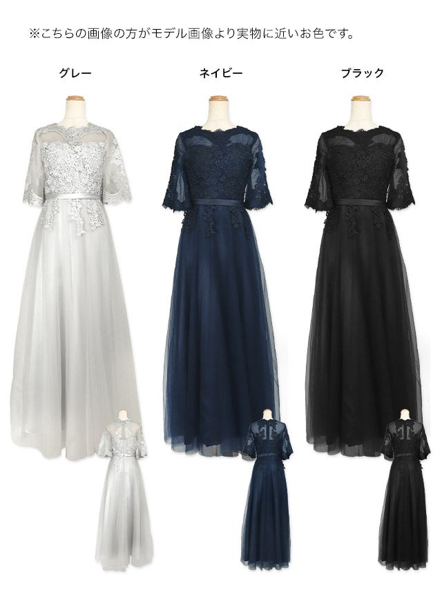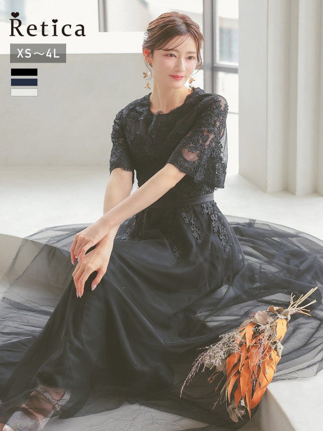 3. シースルー花柄刺繍ウエストマークボリュームチュールパーティードレス 結婚式 発表会 (XSサイズ~4Lサイズ)