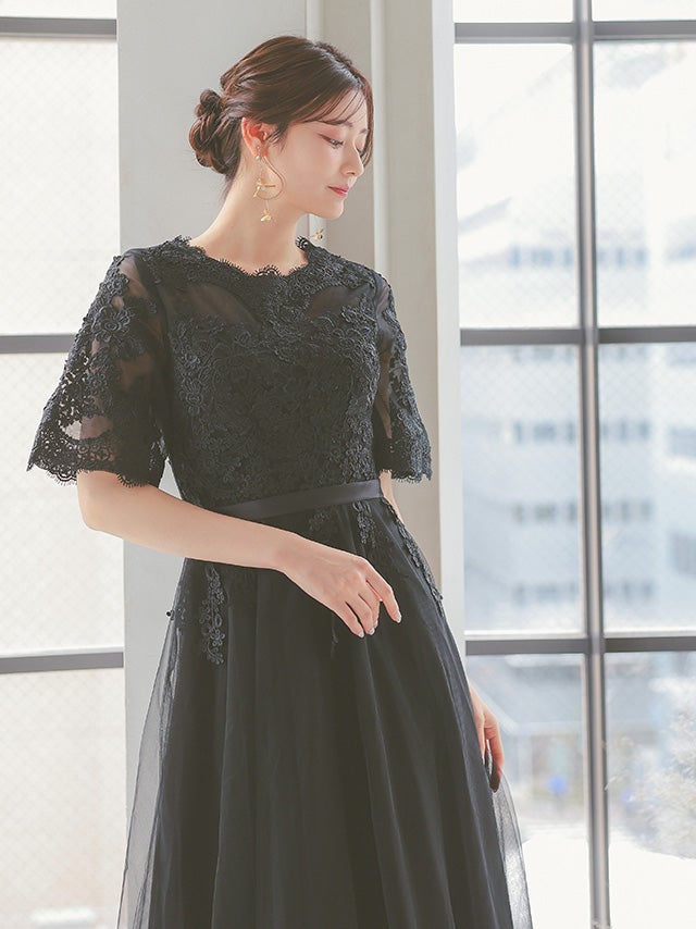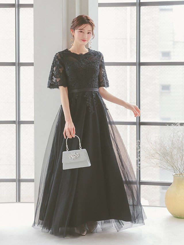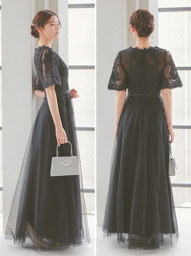 5. シースルー花柄刺繍ウエストマークボリュームチュールパーティードレス 結婚式 発表会 (XSサイズ~4Lサイズ)