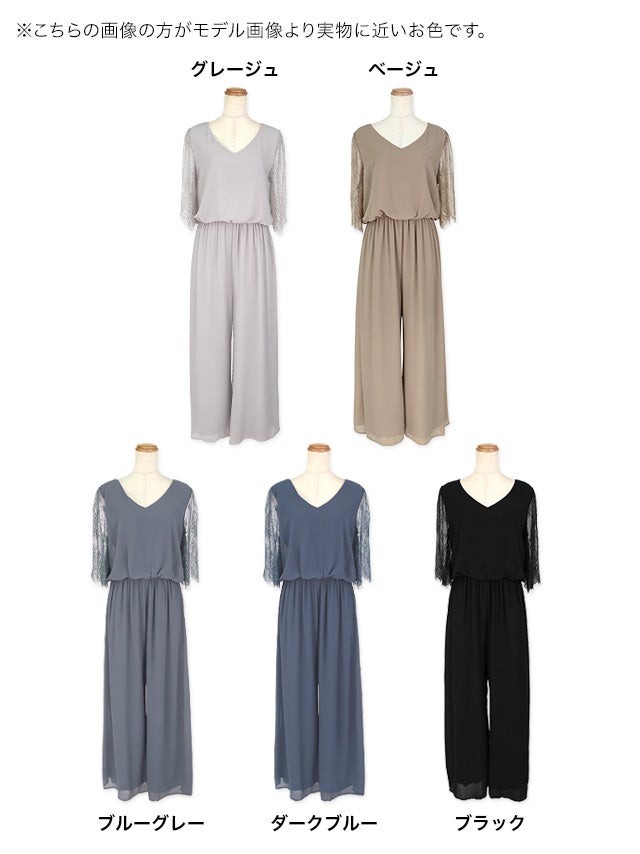 シンプル大人シフォンワイドパンツレーススリーブ結婚式パーティードレス